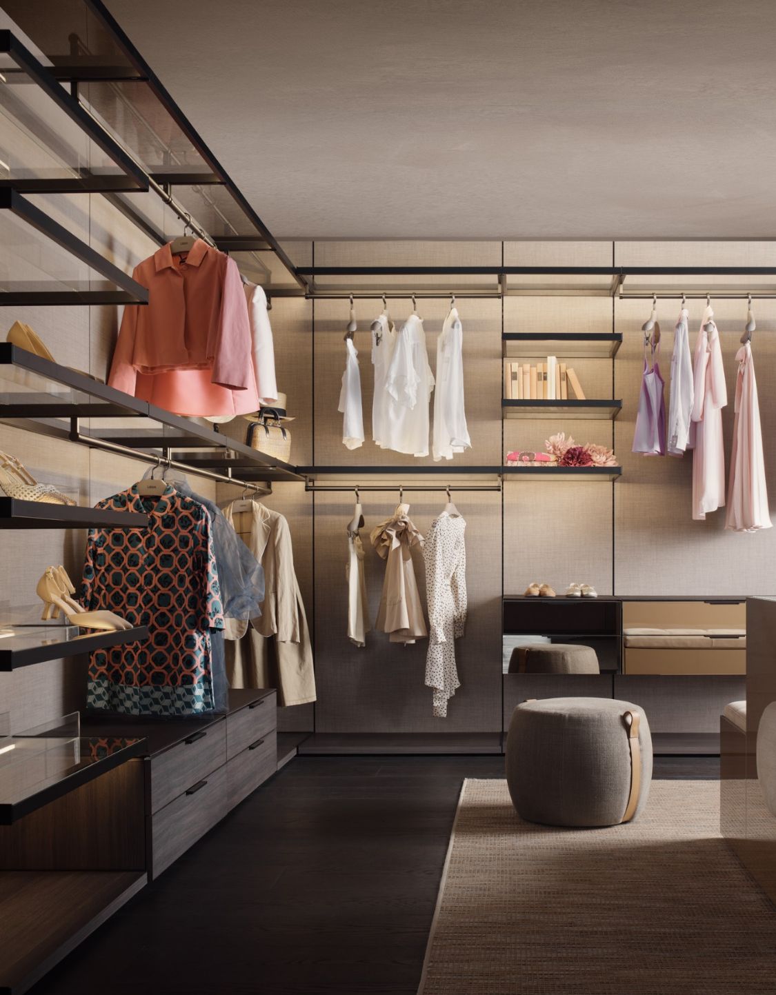 VENTITRE住まう人の個性を引き出す、オーダーメイドのウォークイン・クローゼット。色と素材のシンフォニーを奏で、空間を特徴付け、親密でオーセンティックな雰囲気を作り出します。VentiTreはLEMAの他のモジュール製品と組み合わせができるように設計されており、CENTIMETRO、LT40とも完璧に調和し、ニーズに応じていくつかのエレメントを挿入できます。シェルフの高さ変更が容易な、ケーブルレスのLEDランプシステムも搭載。ライフサイクルの終わりには簡単に分解できるように設計されており、各構成部品を適切にマテリアルリサイクルすることができます。